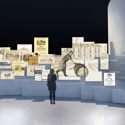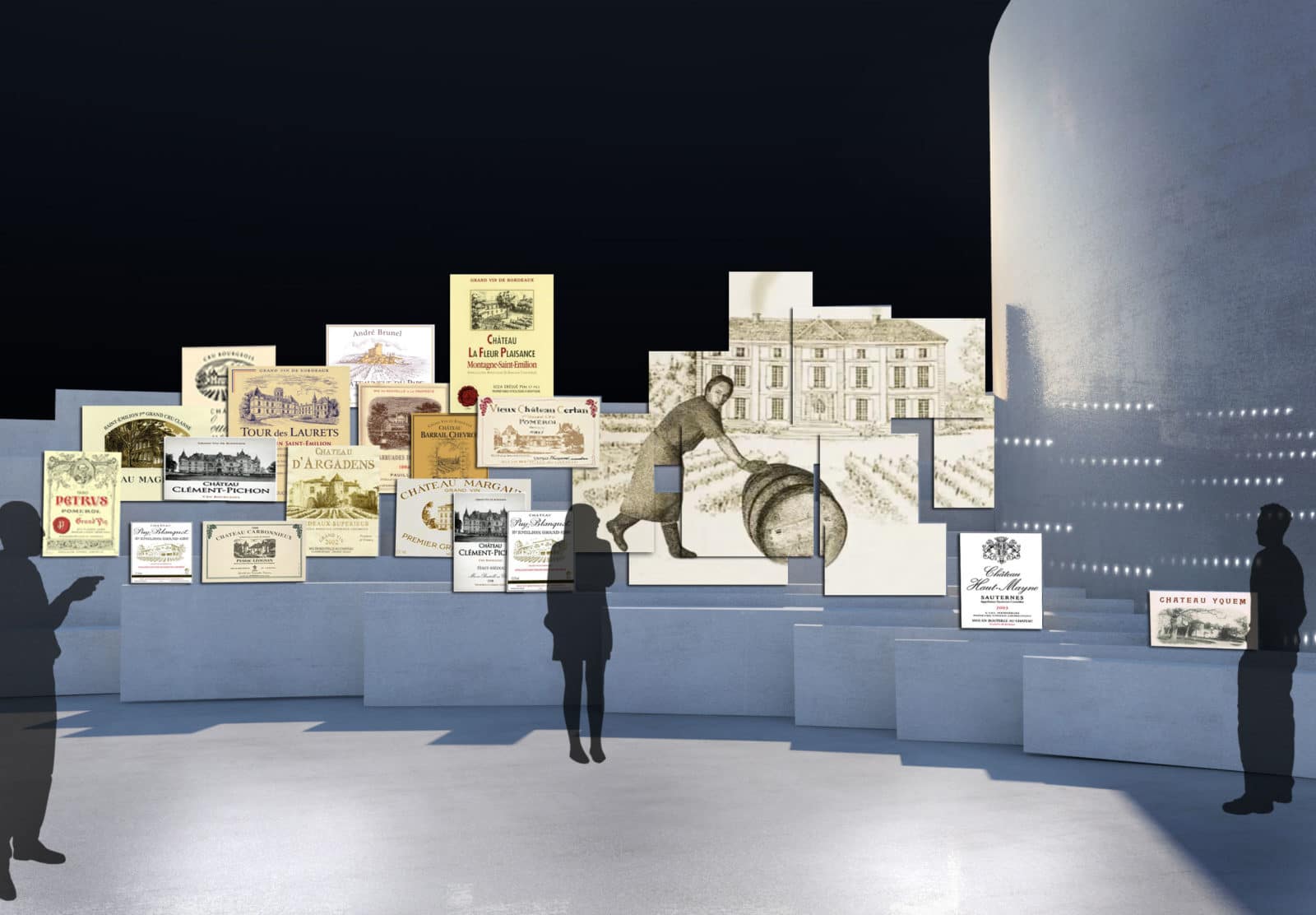 Les neuf installations sont accessibles depuis un seul et même niveau, certaines prennent de l’altitude durant la visite, d’autres s’enfoncent. Nombreuses installations utilisent le numérique, l’objectif est de créer une expérience aussi ludique que mémorable. Depuis le hall, le visiteur sera attiré par les rayons lumineux venant du patio, le mur derrière l’accueil sera animé. Un imposant escalier circulaire entraine le visiteur au niveau supérieur menant au plateau des expositions. Un second hall apparait derrière le premier, le hall des berges qui sera ouvert sur le Garonne et qui desservira les boutiques et autres services. Entre les deux halls vient s’implanter la cave, développé en couronne avec un bar. La visite s’articule autour de neuf modules dont les thèmes sont : Le tour du monde des vignobles ; Au coeur des terroirs ; Des vins pour tous les goûts ; Le vin au fil de l’eau ; Le vin au coeur des civilisations ; L’itinéraire des cinq sens ; Les saveurs et les rêves ; Le vin et vous ; Bordeaux.