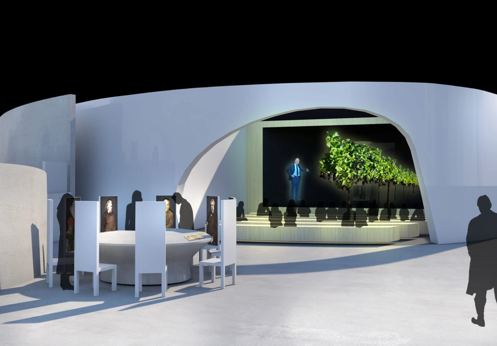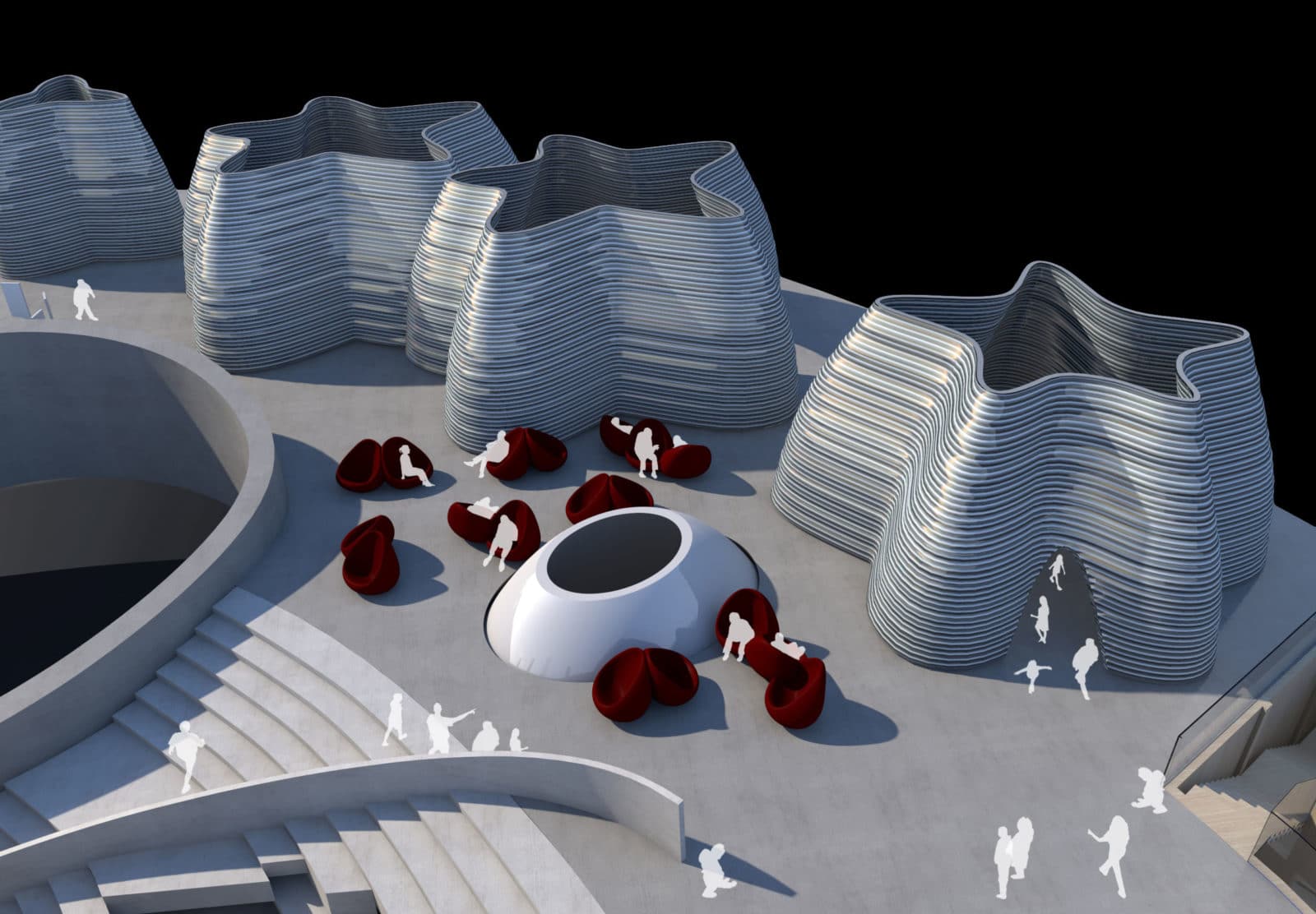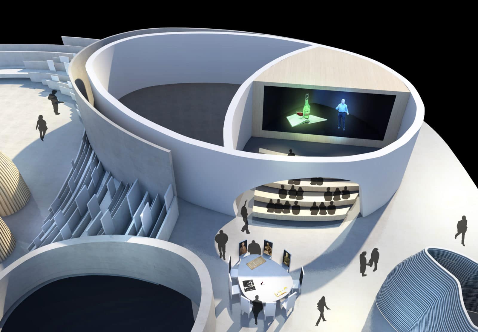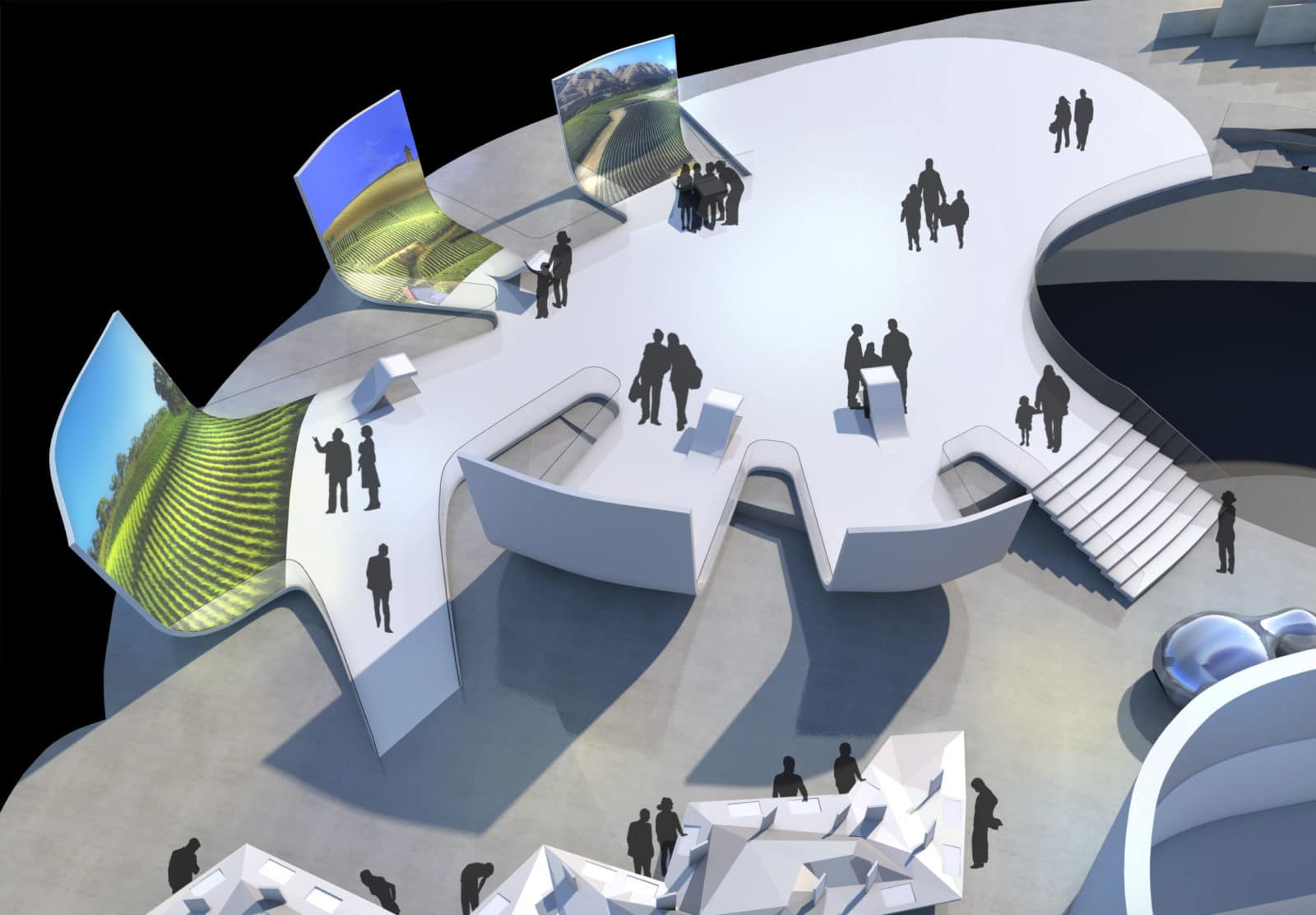 Les architectes Anouk Legendre et Nicolas Desmazières ont imaginés un centre innovant, esthétique, respectueux de l’environnement. Évoquant la volute du vin dans un verre de dégustation, ce lieu s’adresse autant aux spécialistes du vin qu’aux amateurs de vin, sa forme traduit la richesse de ce milieu. Le bâtiment se veut fluide afin que chacun puisse organiser les expositions dans le temps. La forme organique permet d’offrir au visiteur un parcours sensuel, la structure admet des percées de lumière animant la visite. Le Belvédère est légèrement gradiné pour offrir une meilleure vue, le visiteur y accèdera depuis un ascenseur panoramique scénographié sur le thème : « vins et chemin du Paradis ».