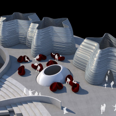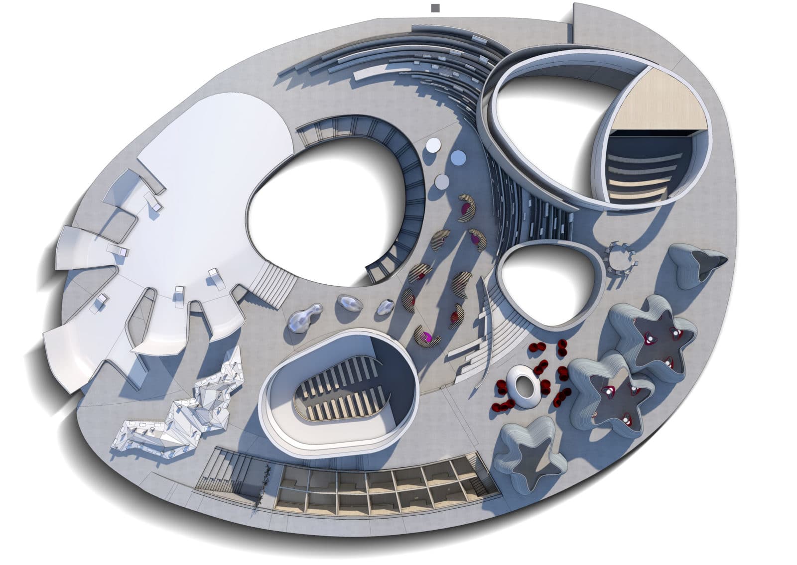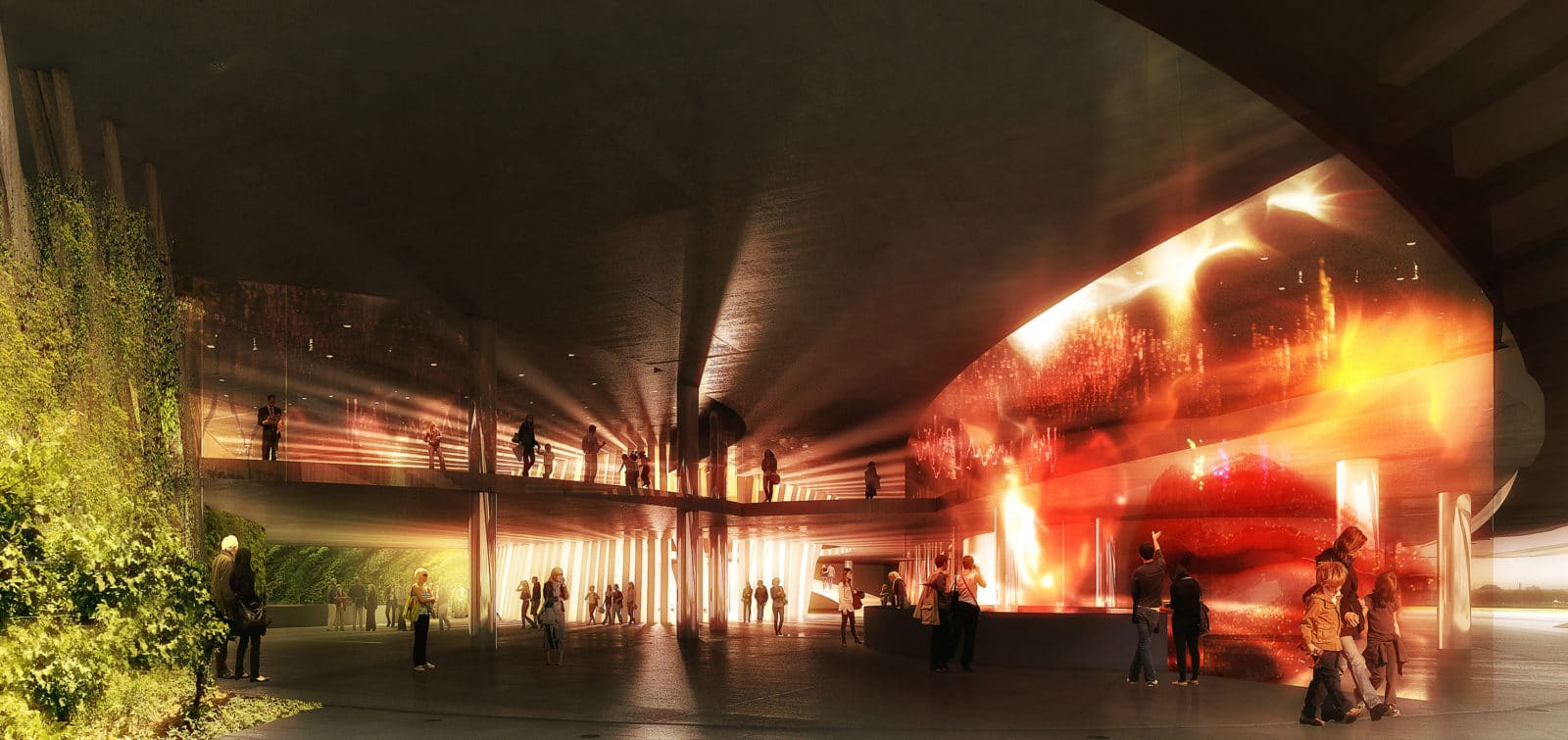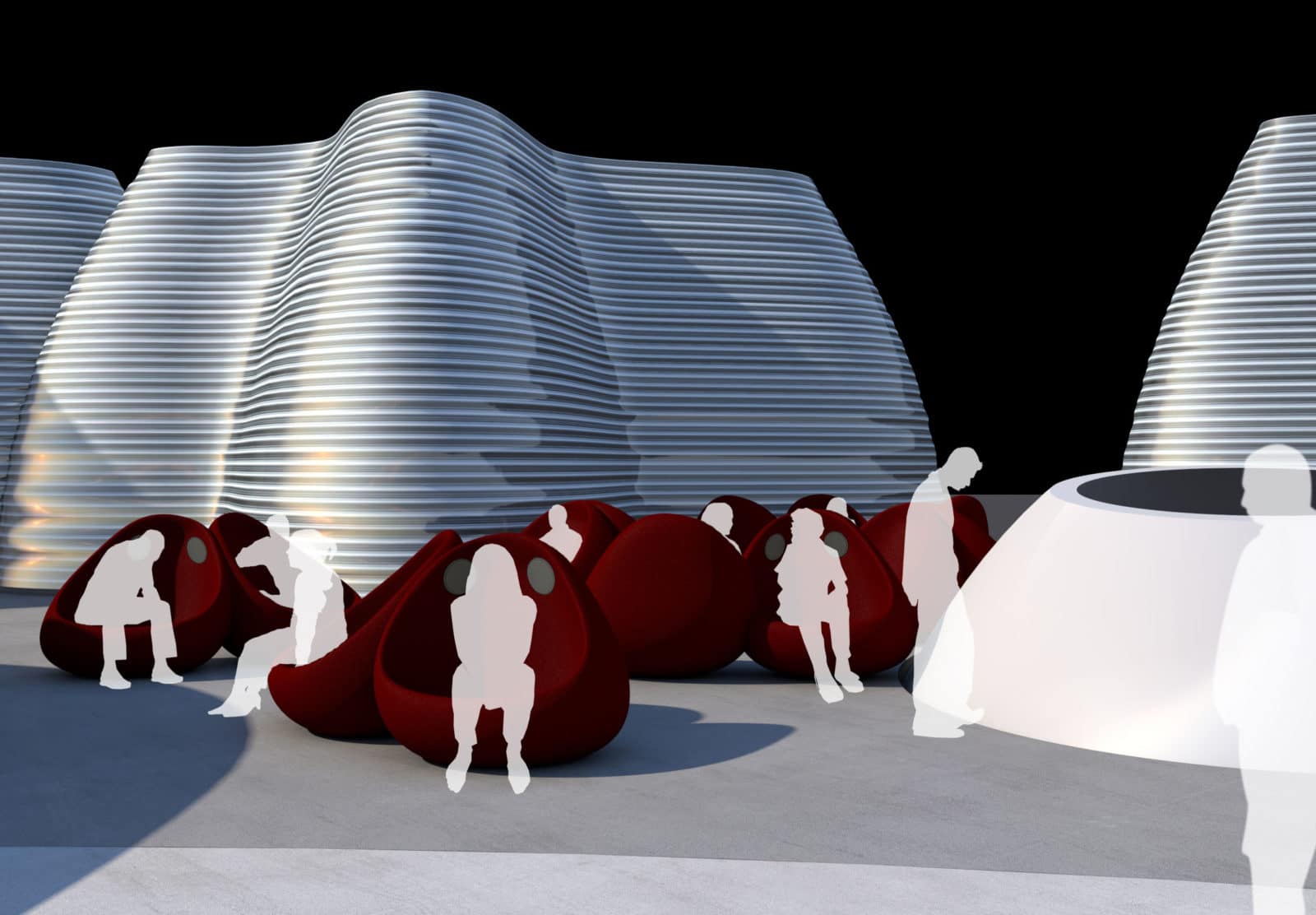 Les architectes Anouk Legendre et Nicolas Desmazières ont imaginés un centre innovant, esthétique, respectueux de l’environnement. Évoquant la volute du vin dans un verre de dégustation, ce lieu s’adresse autant aux spécialistes du vin qu’aux amateurs de vin, sa forme traduit la richesse de ce milieu. Le bâtiment se veut fluide afin que chacun puisse organiser les expositions dans le temps. La forme organique permet d’offrir au visiteur un parcours sensuel, la structure admet des percées de lumière animant la visite. Le Belvédère est légèrement gradiné pour offrir une meilleure vue, le visiteur y accèdera depuis un ascenseur panoramique scénographié sur le thème : « vins et chemin du Paradis ».