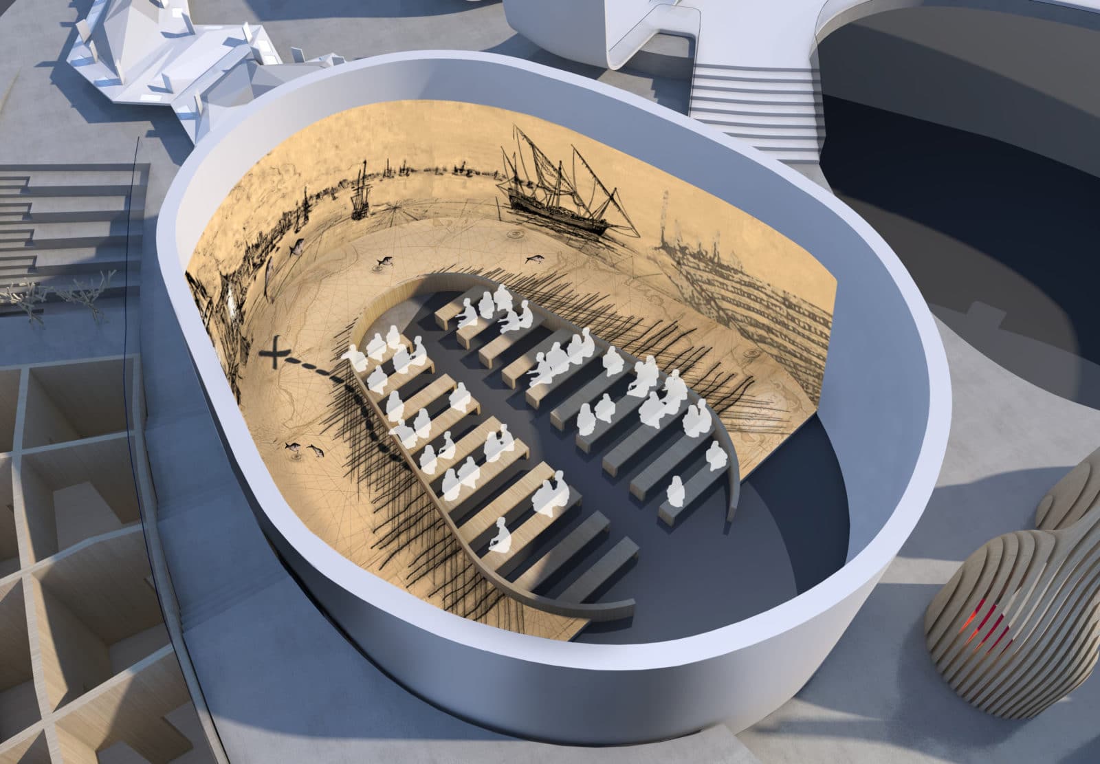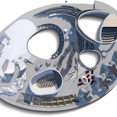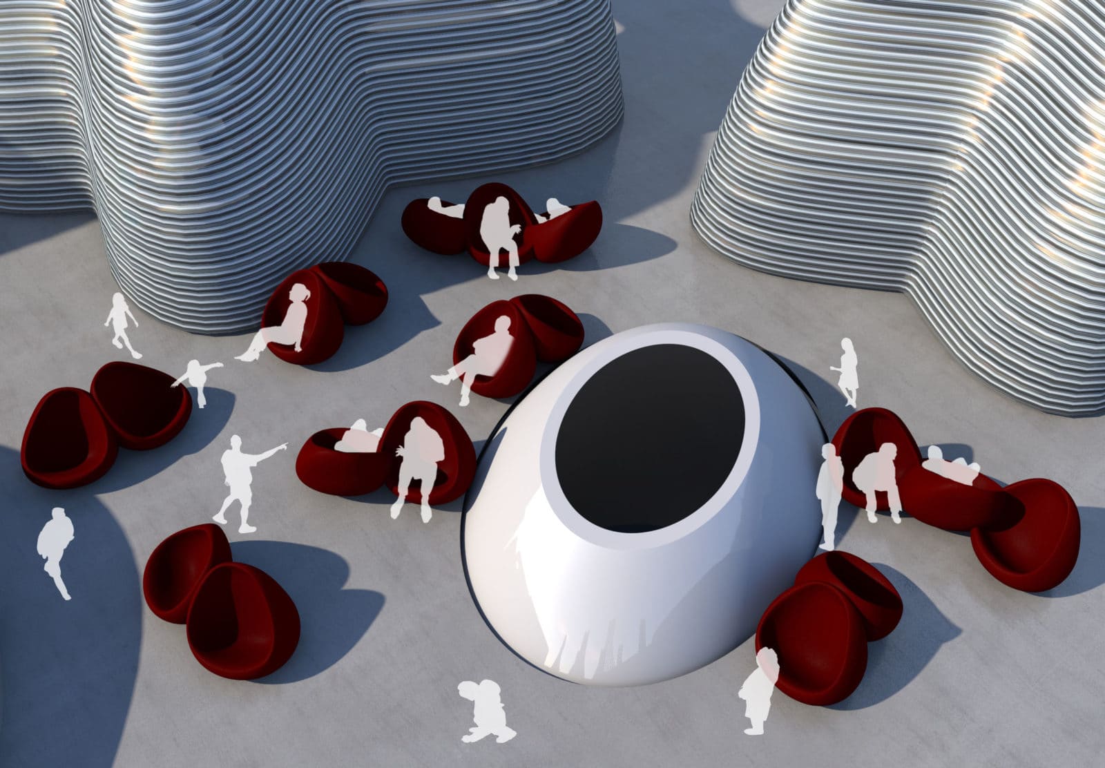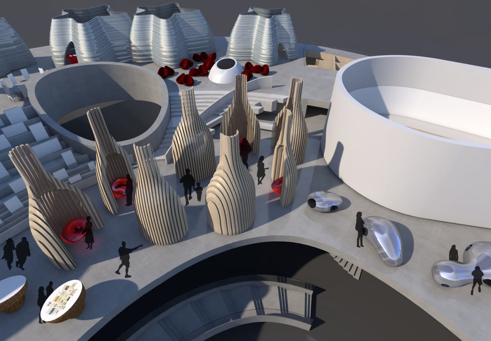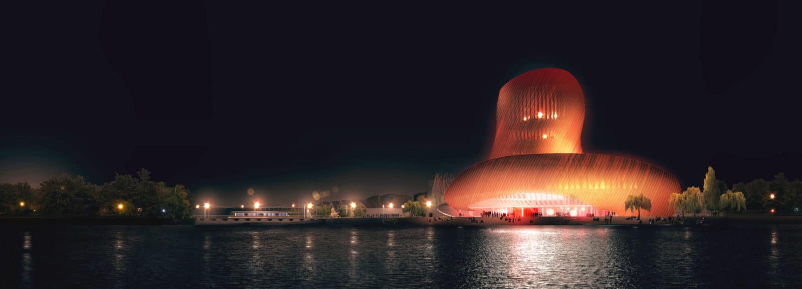 Les architectes Anouk Legendre et Nicolas Desmazières ont imaginés un centre innovant, esthétique, respectueux de l’environnement. Évoquant la volute du vin dans un verre de dégustation, ce lieu s’adresse autant aux spécialistes du vin qu’aux amateurs de vin, sa forme traduit la richesse de ce milieu. Le bâtiment se veut fluide afin que chacun puisse organiser les expositions dans le temps. La forme organique permet d’offrir au visiteur un parcours sensuel, la structure admet des percées de lumière animant la visite. Le Belvédère est légèrement gradiné pour offrir une meilleure vue, le visiteur y accèdera depuis un ascenseur panoramique scénographié sur le thème : « vins et chemin du Paradis ».